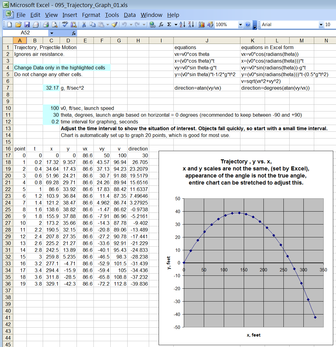 Trajectory Graph on Excel